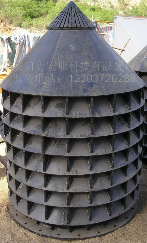 活性石灰豎窯在煅燒過程中,供風(fēng)的大小和均勻程度,對石灰的活性度和燒結(jié)的生熟均勻至關(guān)重要,如果風(fēng)不均勻就會出現(xiàn)偏燒,以至使過燒和燒不透現(xiàn)象發(fā)生,大大影響了活性石灰的質(zhì)量。我公司研制的計算機仿真風(fēng)帽吸取了國內(nèi)外的經(jīng)驗,結(jié)合原燃料(石灰和焦炭)的質(zhì)量和塊度的大小,用計算機作概率仿真設(shè)計風(fēng)帽。概率仿真風(fēng)帽是一種新型的供助燃風(fēng)的一進風(fēng)帽,助燃風(fēng)從下口環(huán)形進入,然后通過筒壁若干個風(fēng)孔出口進入爐膛,所鼓風(fēng)經(jīng)風(fēng)帽不同孔徑的風(fēng)口和不同高度可使所送風(fēng)壓風(fēng)量概率分布到窯內(nèi)整個截面。